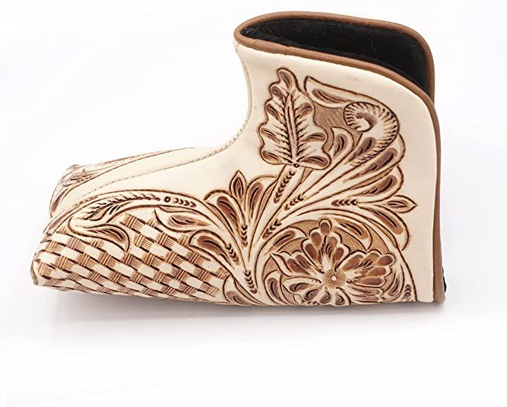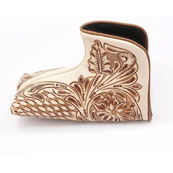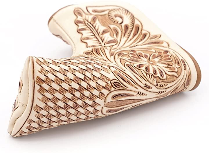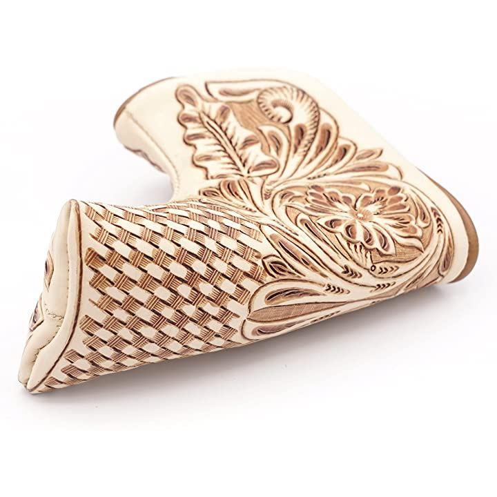 リノプラネット ゴルフ パターカバー ピンタイプ ヘッドカバー 本革 カービング 牛革 ブレード型 マグネット開閉 ブレードタイプ