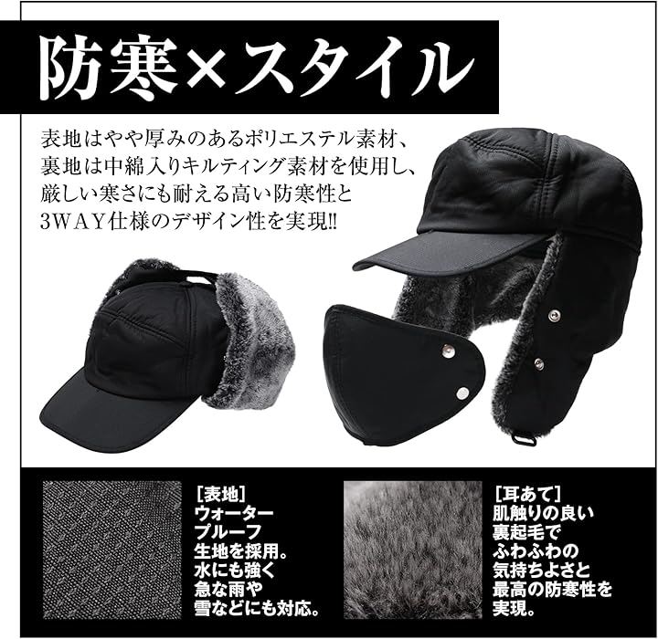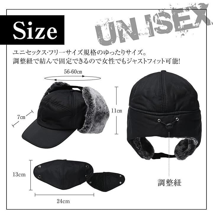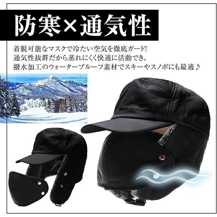 フライトキャップ 耳あて 防寒帽子 メンズ 冬 マスク付き スノボ スキー ロシア