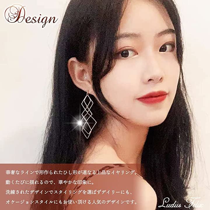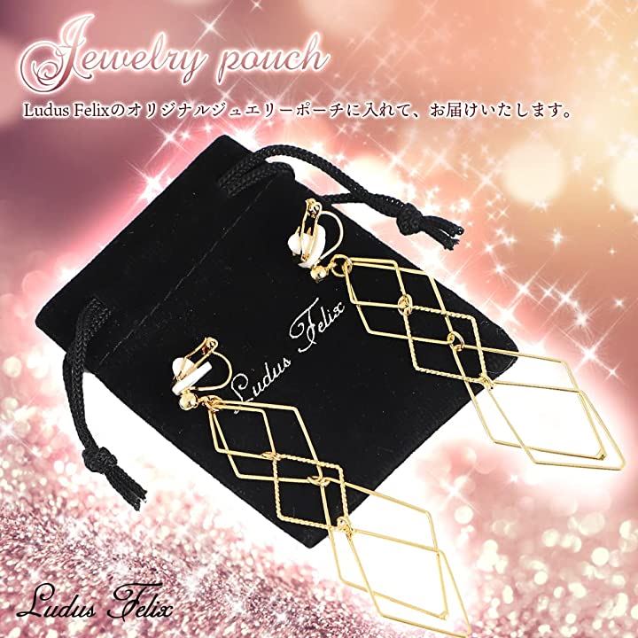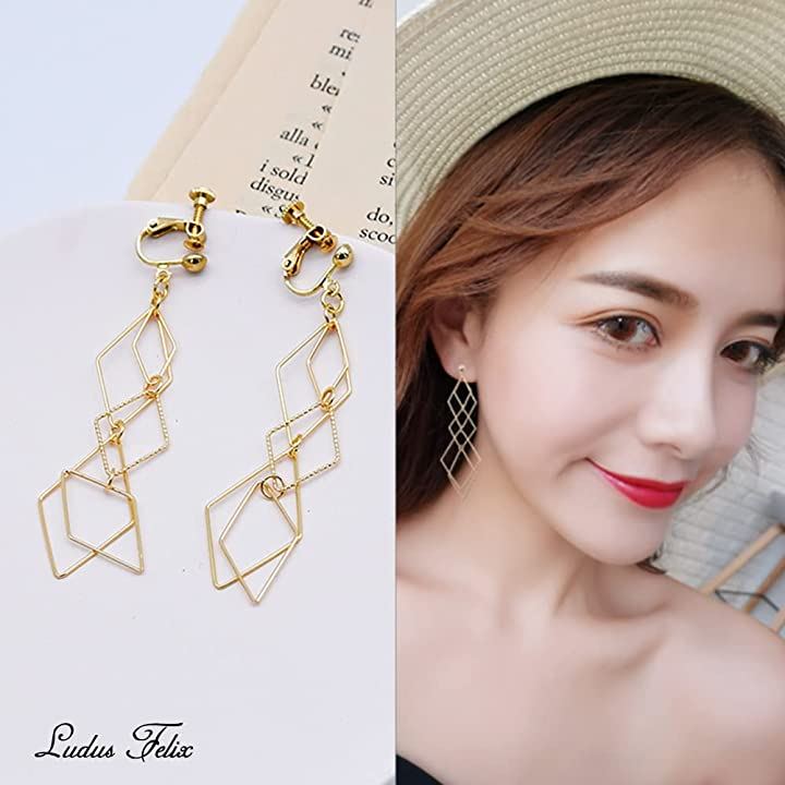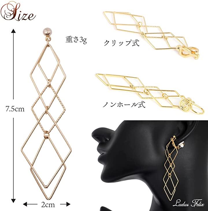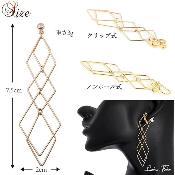 イヤリング-レディース-ひし形 フェイクピアス-ピアス風-ノンホールピアス クリップ式