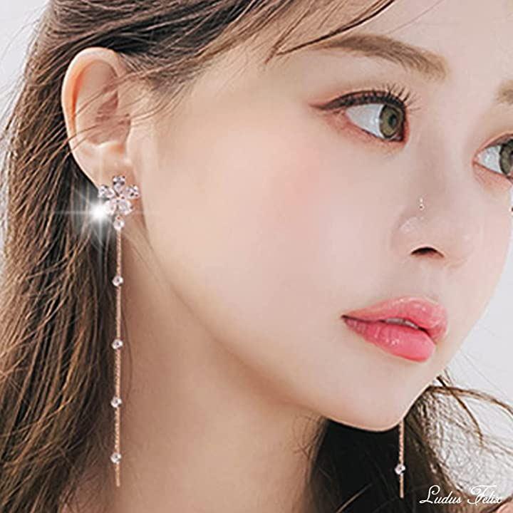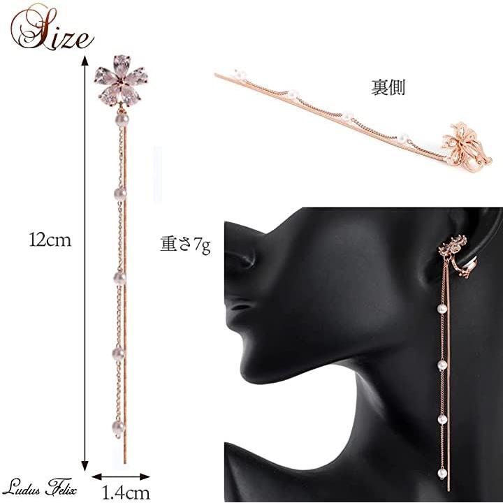イヤリング-レディース-花 フェイクピアス-ピアス風-ノンホールピアス-パール
