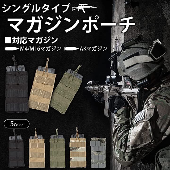 サバゲー マガジン M4 M16 AK AR モール対応 シングル 単式 オープントップ 弾倉ポーチ サバイバルゲーム装備