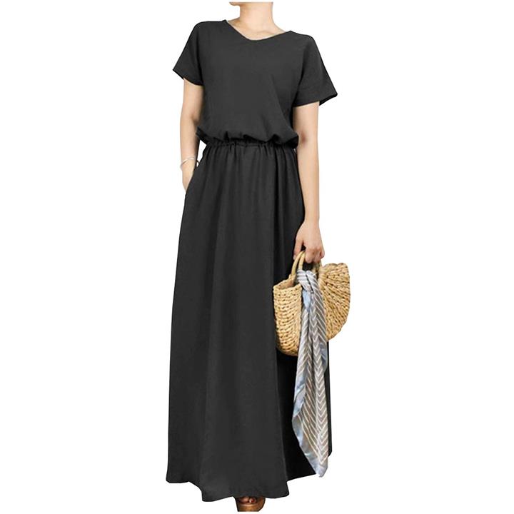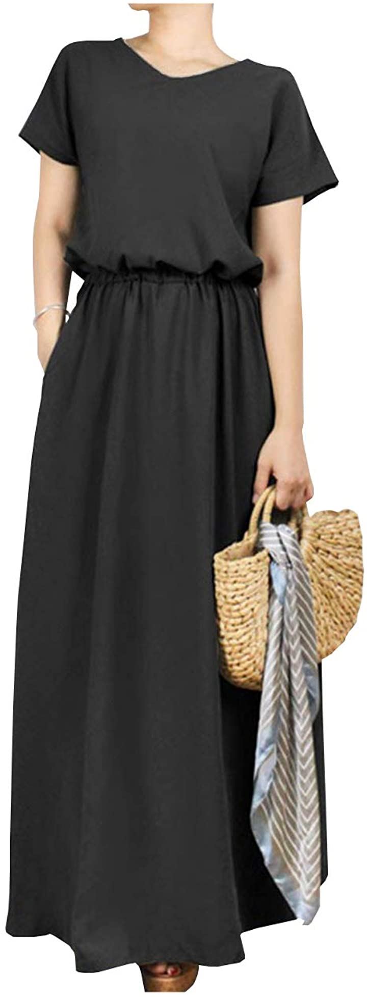 [ライオンガーデン] 4色展開 サマーワンピース 夏 半袖 ロング ワンピース シンプル 無地 レディース ブラック M |