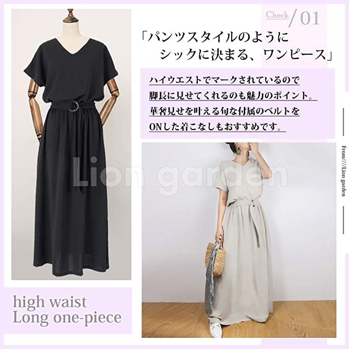 [ライオンガーデン] サマーワンピース 夏 半袖 ロング ワンピース シンプル 無地 レディース ブラック L |