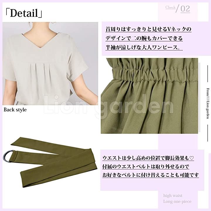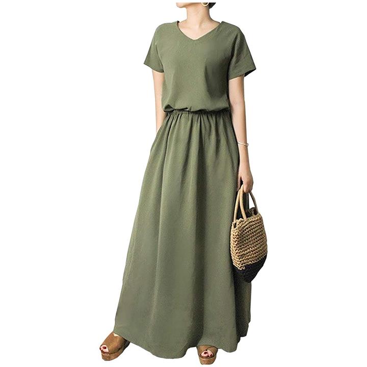 [ライオンガーデン] サマーワンピース 夏 半袖 ロング ワンピース シンプル 無地 レディース グリーン XL |