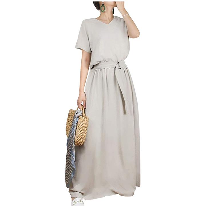 [ライオンガーデン] サマーワンピース 夏 半袖 ロング ワンピース シンプル 無地 レディース ベージュ XL |