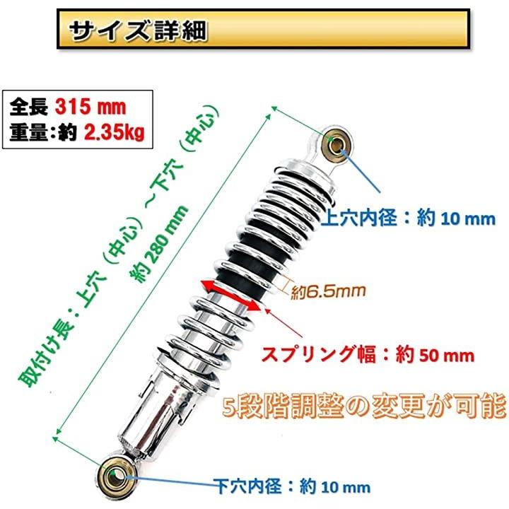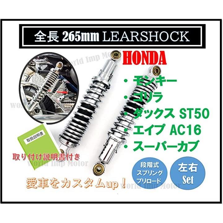 ホンダ ヤマハ スズキ honda yamaha suzuki 用 280mm バイク パーツ メッキ リア サスペンション 2本 set リアショック HONDA 用 モモンキー Z50J ゴリラ AB27 5段階式スプリングプリロード 取り付け説明書