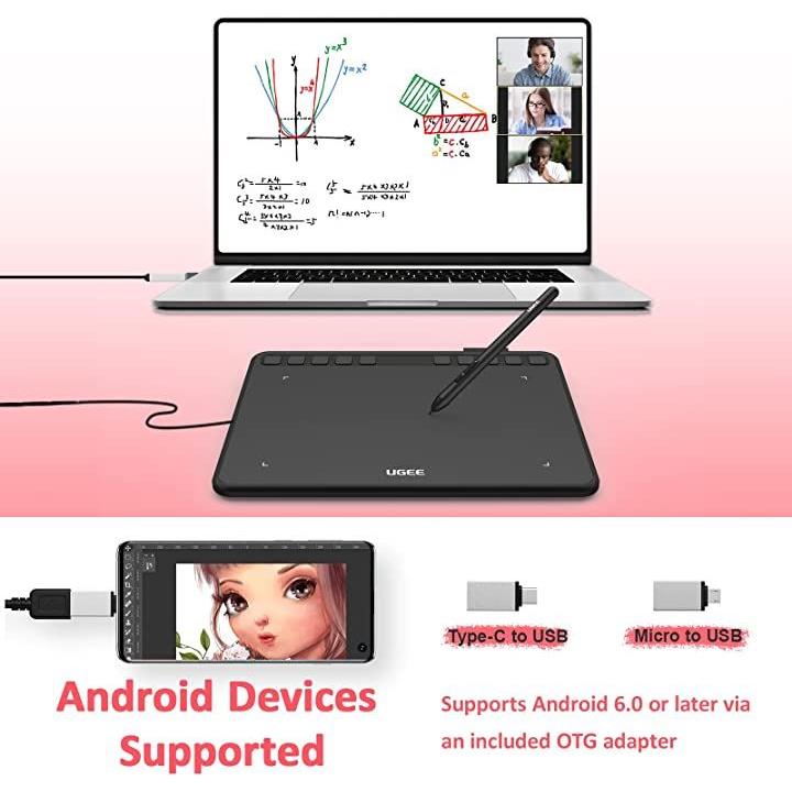 AndroidPhone縦長モードAndroid端末との連携UGEEGraphicsのドローイングタブレットは、OTG機能をサポートしたAndroid6.0以降で動作します。