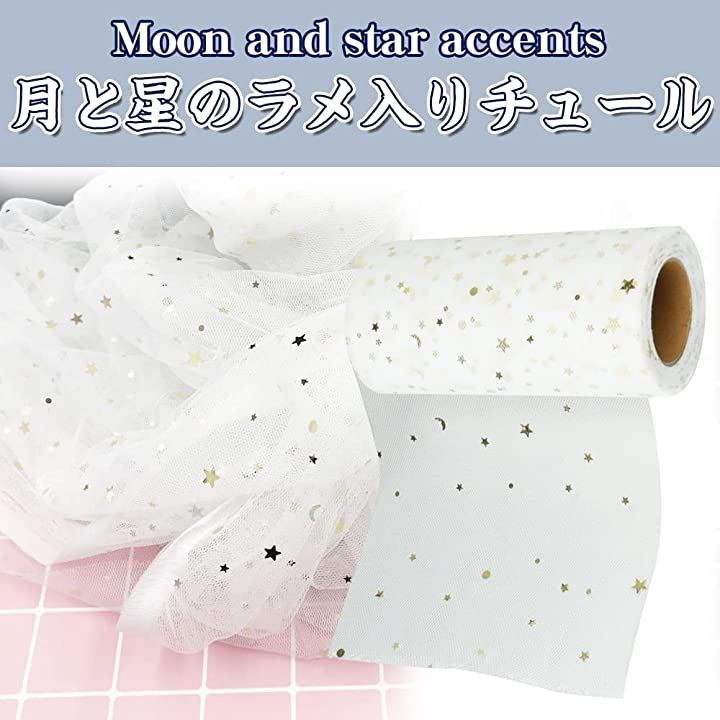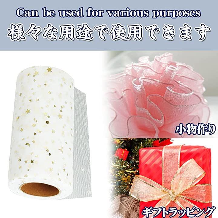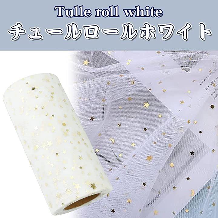 チュール生地 ロールタイプ キラキラ スパンコール 透け感 ラッピング 装飾 14.3cmx22.8m ホワイト