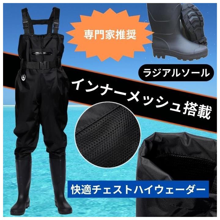 ウェーダー 釣り 胴長 長靴 インナーメッシュ ラジアルソール 防水 スーツ チェストハイ フィッシングウェーダー ブラック/ナイロン インナーメッシュ搭載
