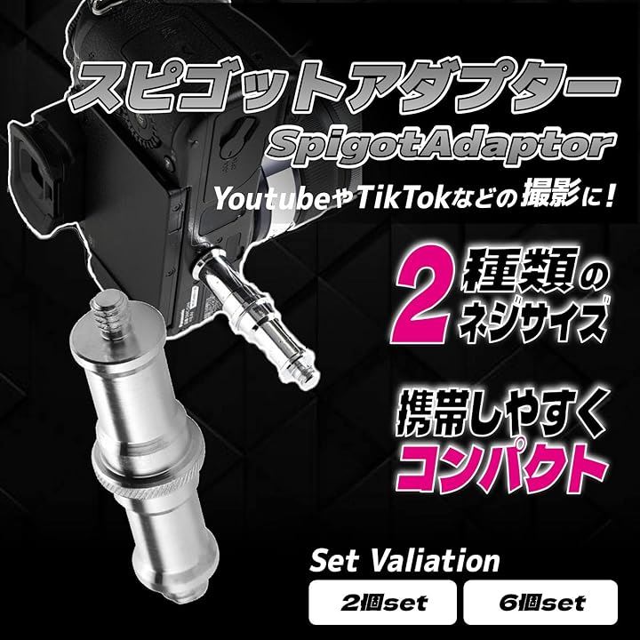 スピゴット アダプター ネジ カメラ 三脚 フラッシュ ライトスタンド 撮影 2個セット