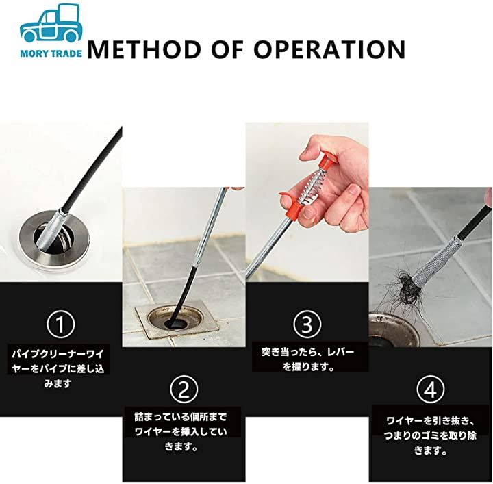 morytrade パイプクリーナー ワイヤー式 つまり解消 器具 排水溝 掃除 ごみはさみ ロング