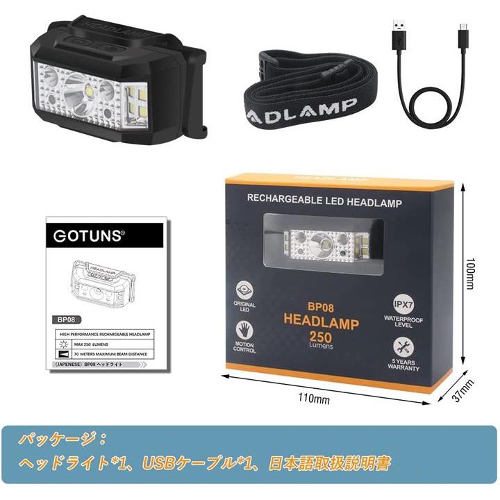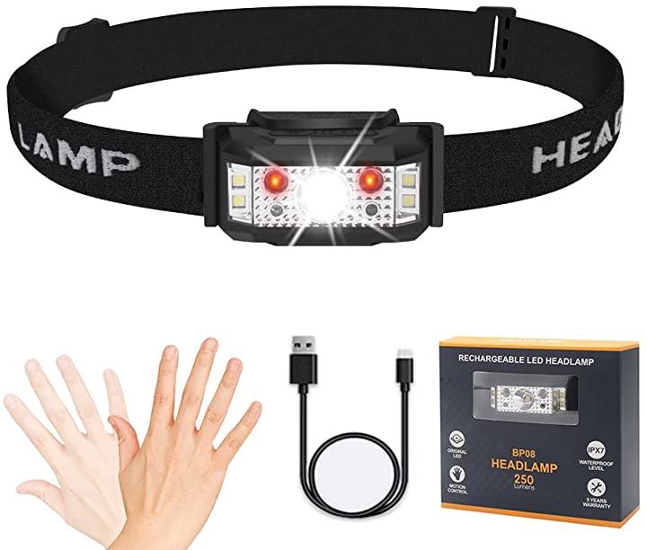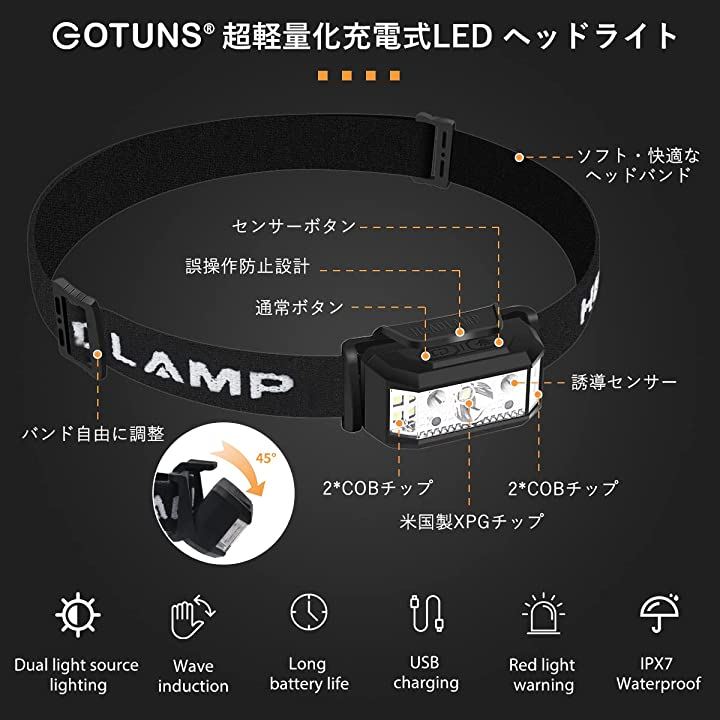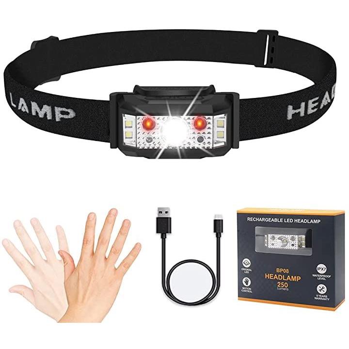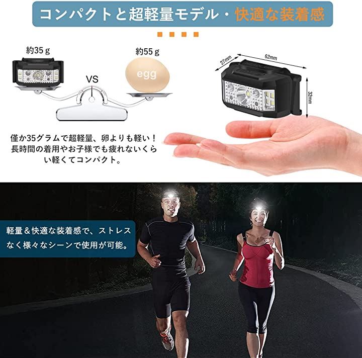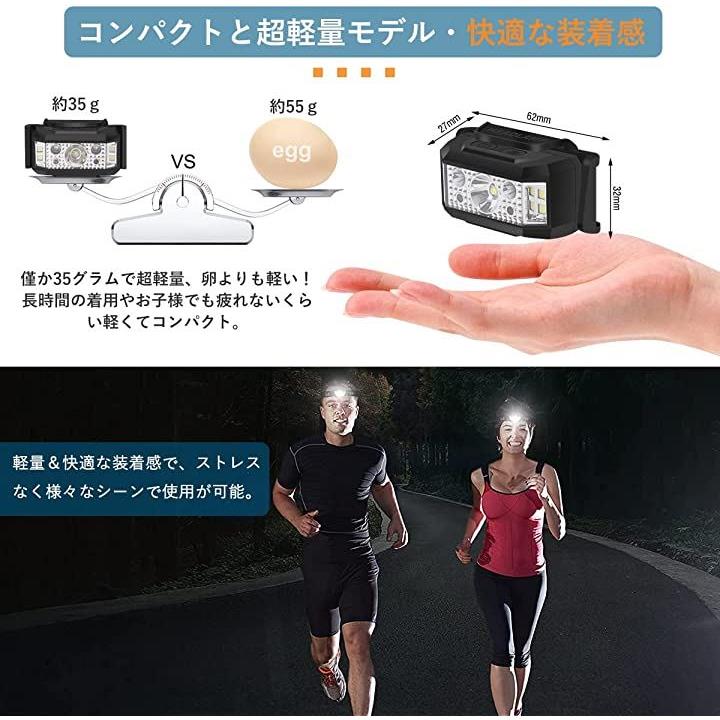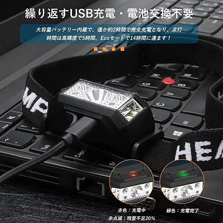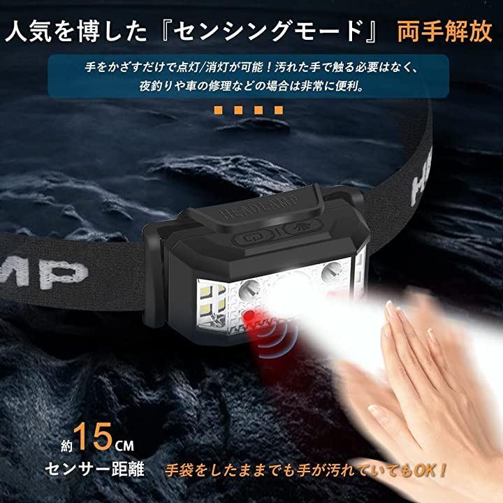 ヘッドライト 充電式 軽量 ledヘッドランプ USB充電 センサー機能 ライト6モード
