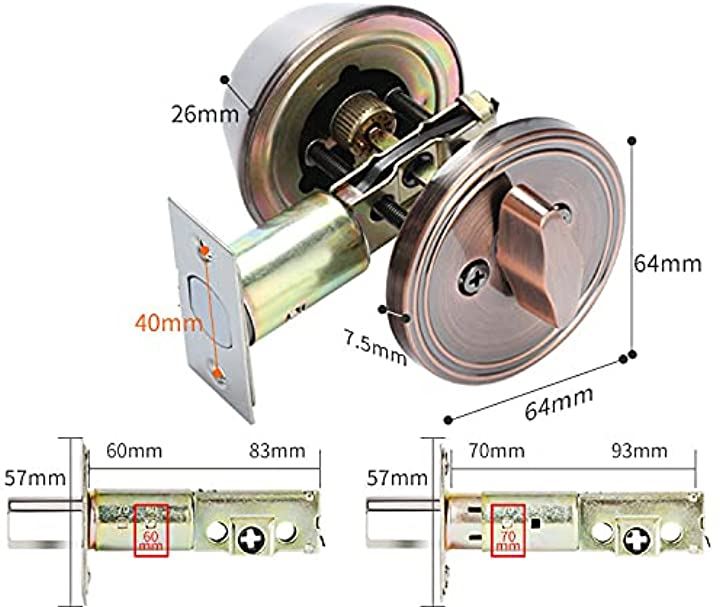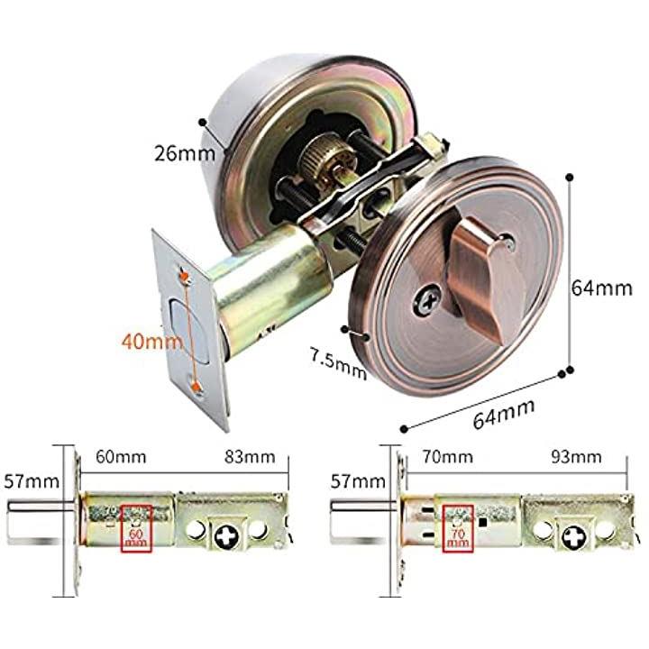 ドアノブ ロックセット ドアロック デッドボルト シリンダー 30-45mm バックセット60-70mm 鍵付き