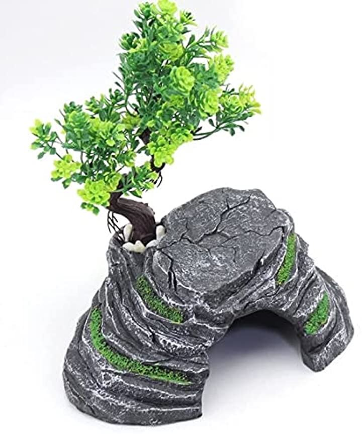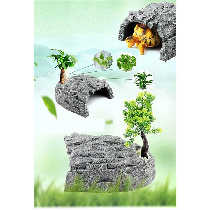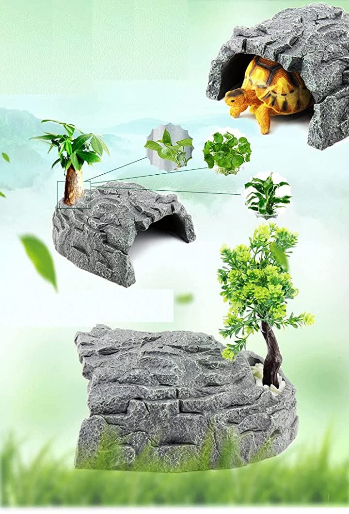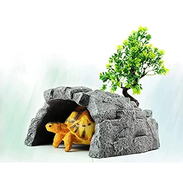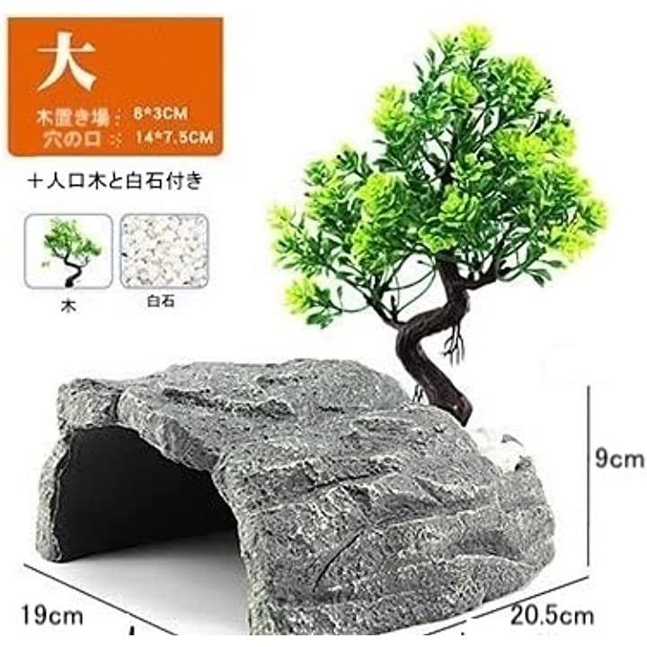 亀 カメ かめ 爬虫類 隠れ家 シェルター 水槽 浮島 インテリア 木と石付き