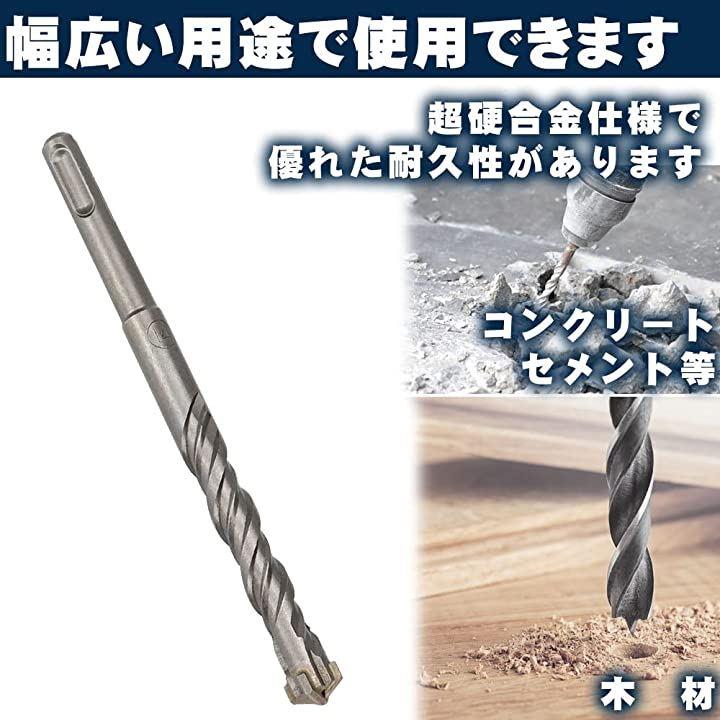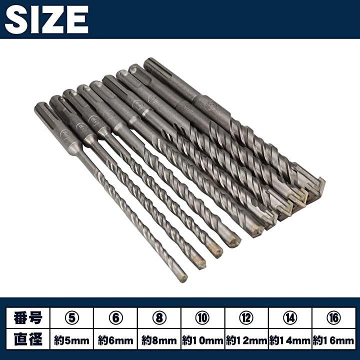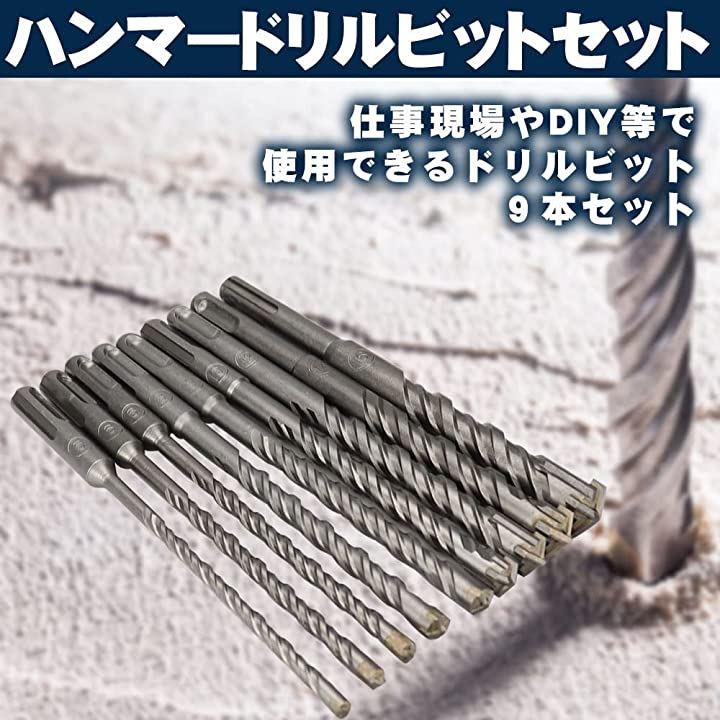 ハンマードリルビット 電動ハンマー用 9本組 穴あけ工具 木材 金属 コンクリート 収納ケース付属 持ち運び