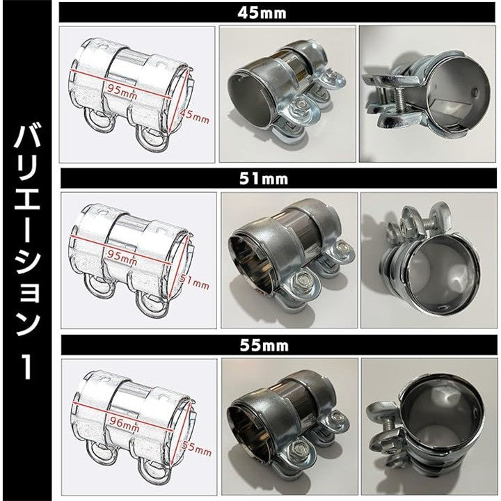 S-NET マフラー バンド 汎用 エキゾースト 排気管 クランプ 連結 スリーブ パイプ コネクター ステンレス 製 全長 96mm SN-290-MC |