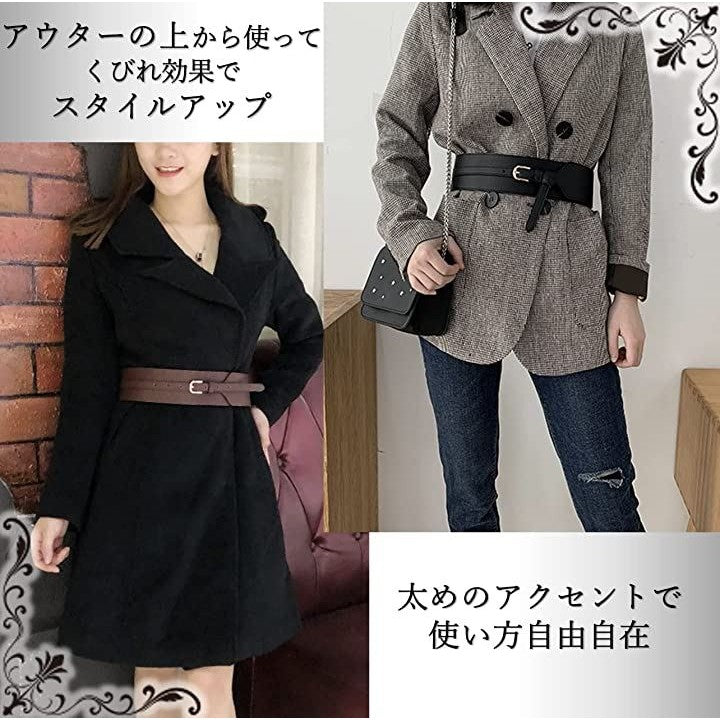 フリフラレディース ベルト レザーベルト 太ベルト バックルファション 幅広 ワイド 黒