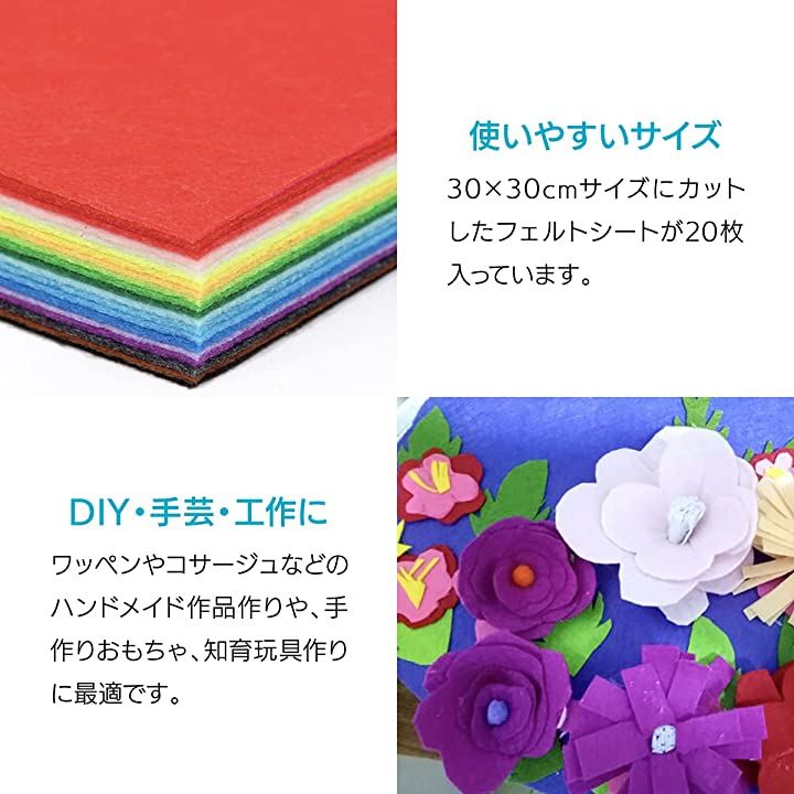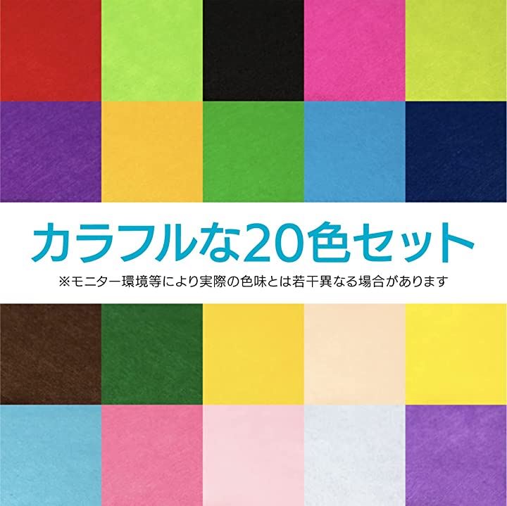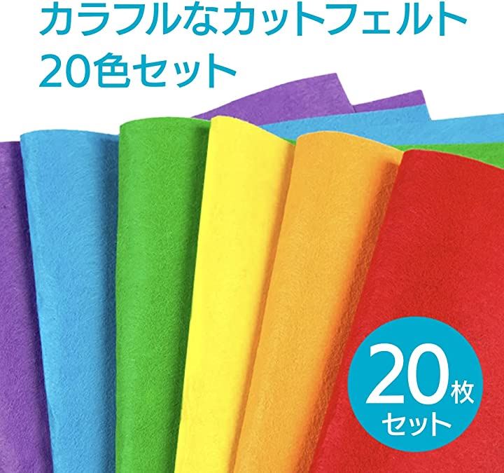 フェルト カラフル20色 セット ハンドメイド 生地 無地 30 x 30cm