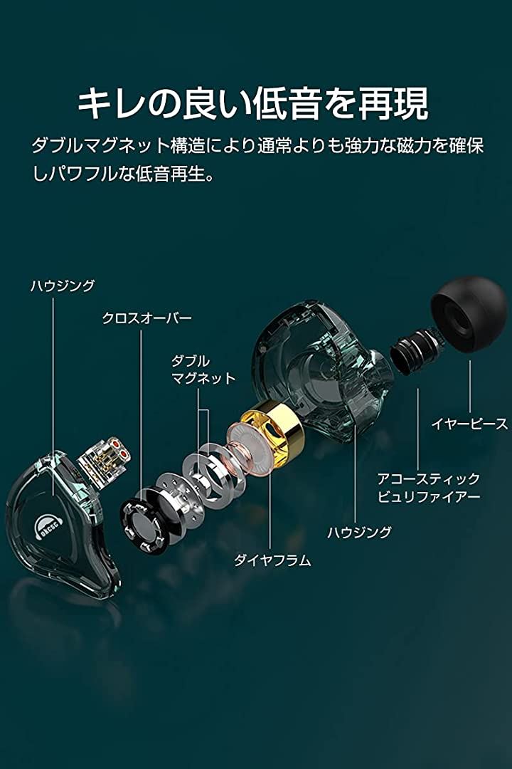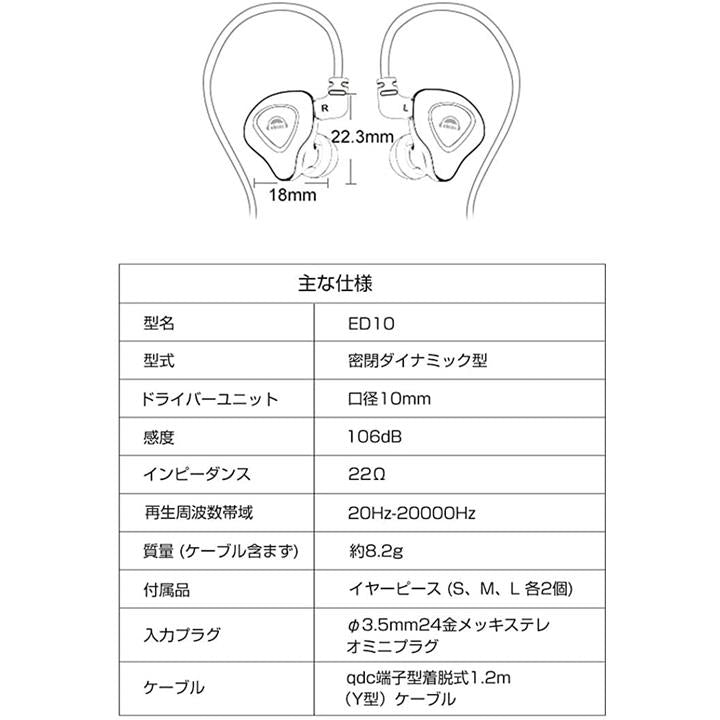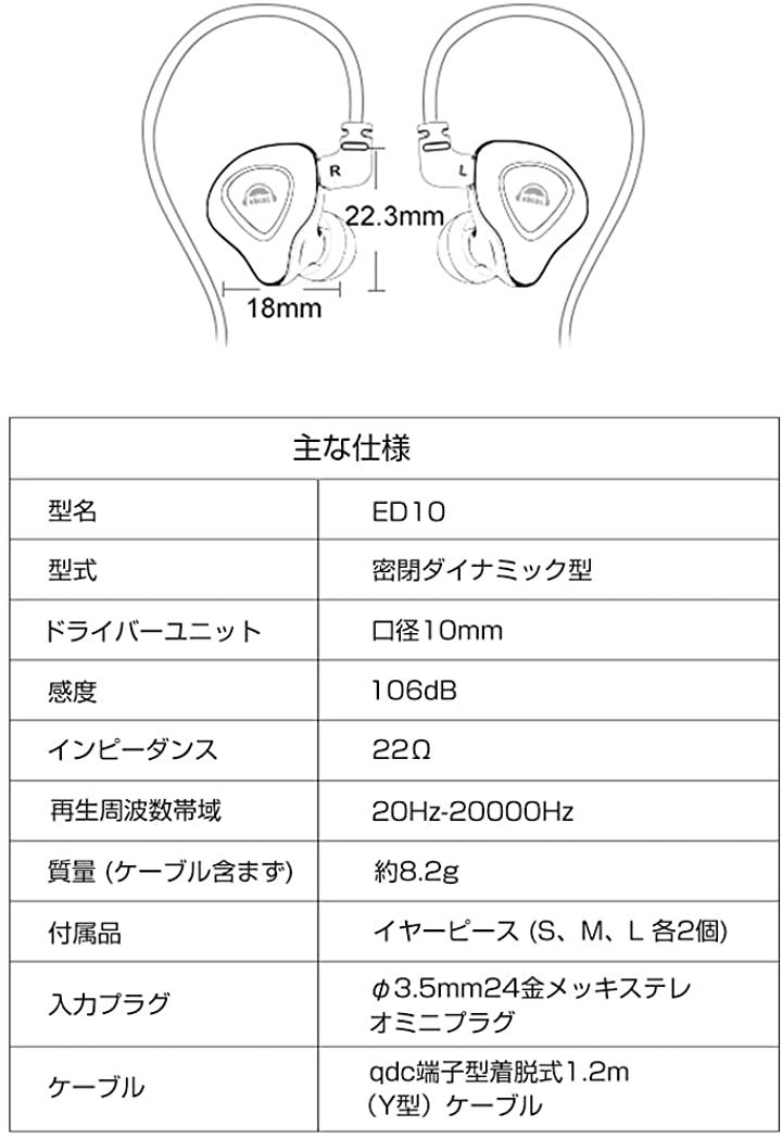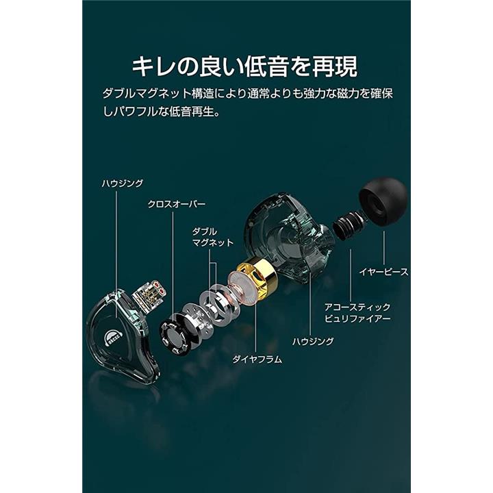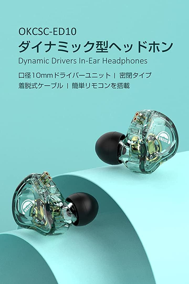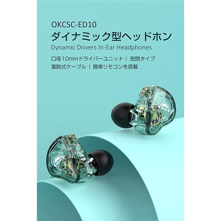 互換品 ED10 イヤホン 有線 カナル型イヤホン 重低音 耳掛け 着脱式ケーブル パソコン用 PC/スマホ対応 3.5mm