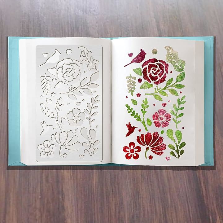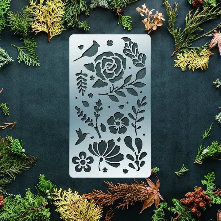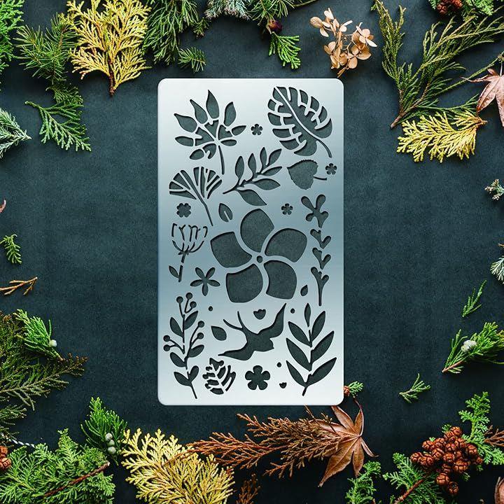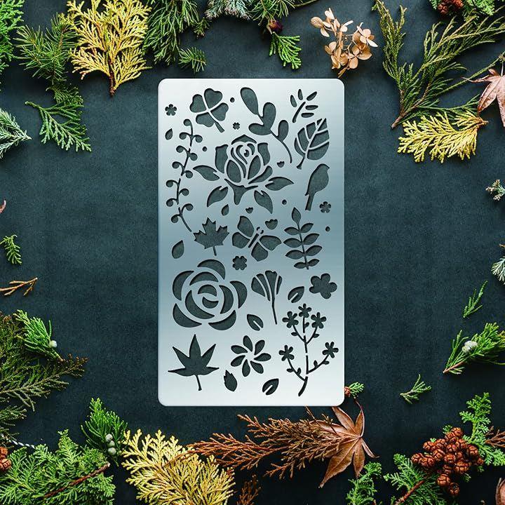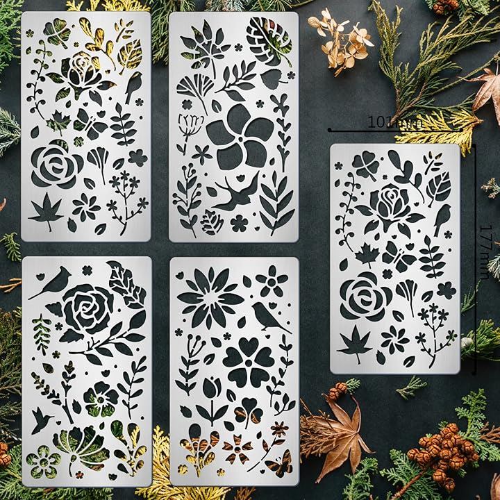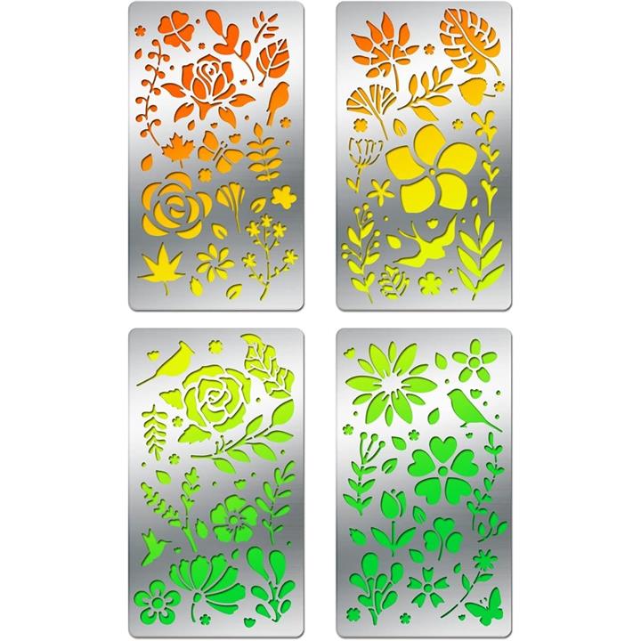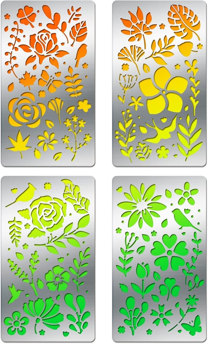 4枚 ステンシルシート ステンレス 合金製 花 描画テンプレート 手帳用 絵図 アルバム リサイクル DIYクラフト ハンドメイド 素材