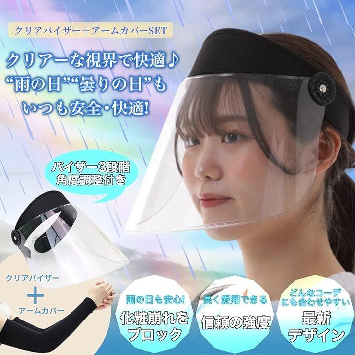 アームカバー付き 最高のフィット感 レインバイザー 視界圧倒的クリアー しっかりした造り レインハット 曇らない 理想的なデザイン サンバイザー レディース メンズ 兼用
