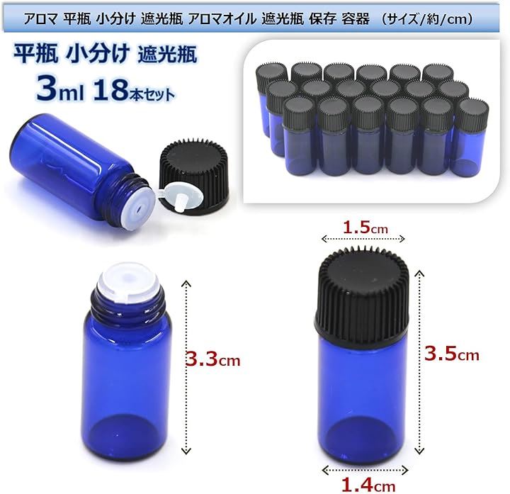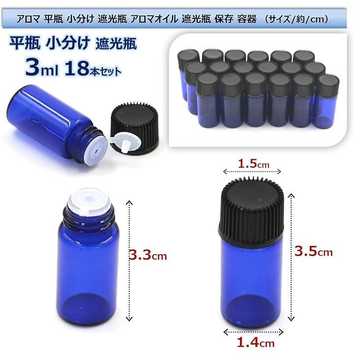 アロマ 平瓶 小分け ボトル 遮光瓶 オイル 詰替 ケース アロマオイル 香水 精油 耐熱ガラス ビン