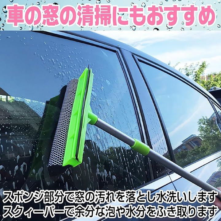 水切りワイパー スキージー ガラスワイパー 高所掃除 窓クリーナー スノーブラシ 伸縮 両面 ガラス掃除