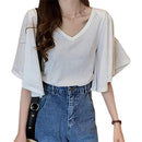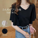 フリル袖 Vネックシャツ レディース 半袖 きれいめ ゆったり