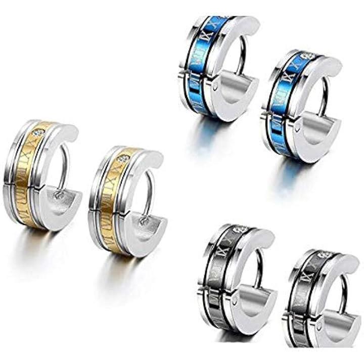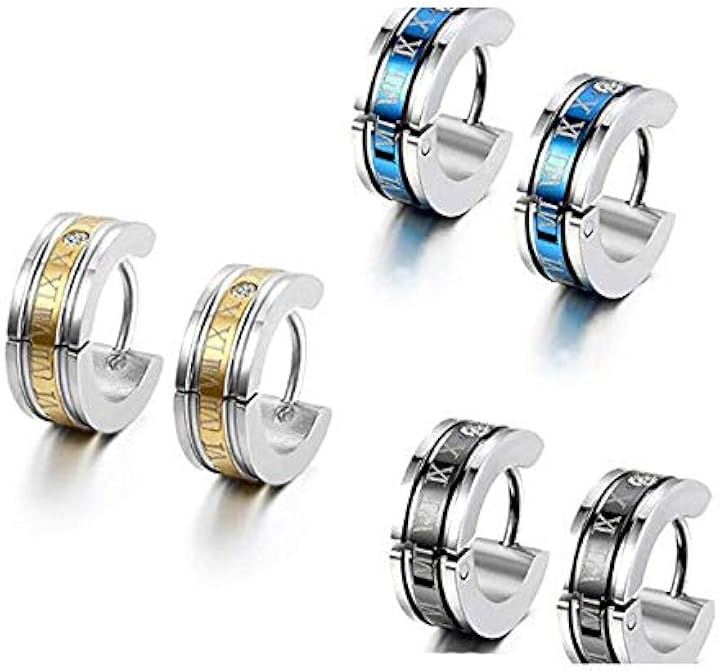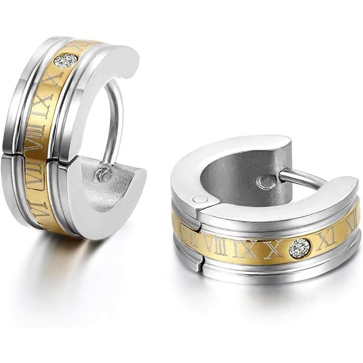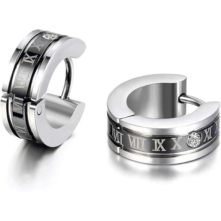 ピアス メンズ ローマ数字 リングピアス 小さめ ステンレス CZ ダイヤ付き 両耳用2つ入り 人気アクセサリー