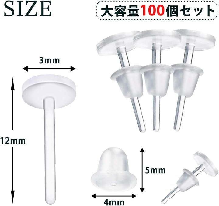 100個入 透明ピアス 樹脂 パーツ 大容量
