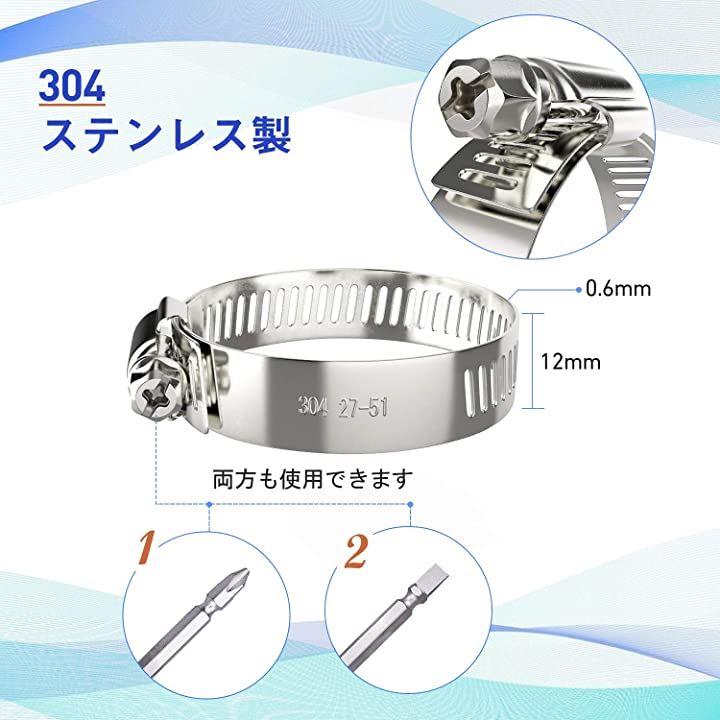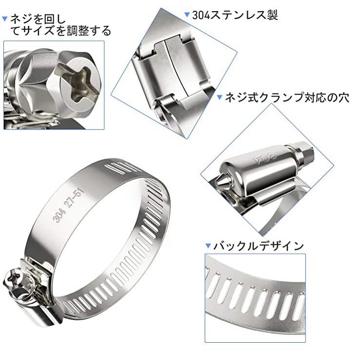 互換品 ホースバンドSUS304ステンレス製鋼10個入りΦ40mm ネジタイプホースクランプ 調整可能 配管用 Φ27-51mm対応