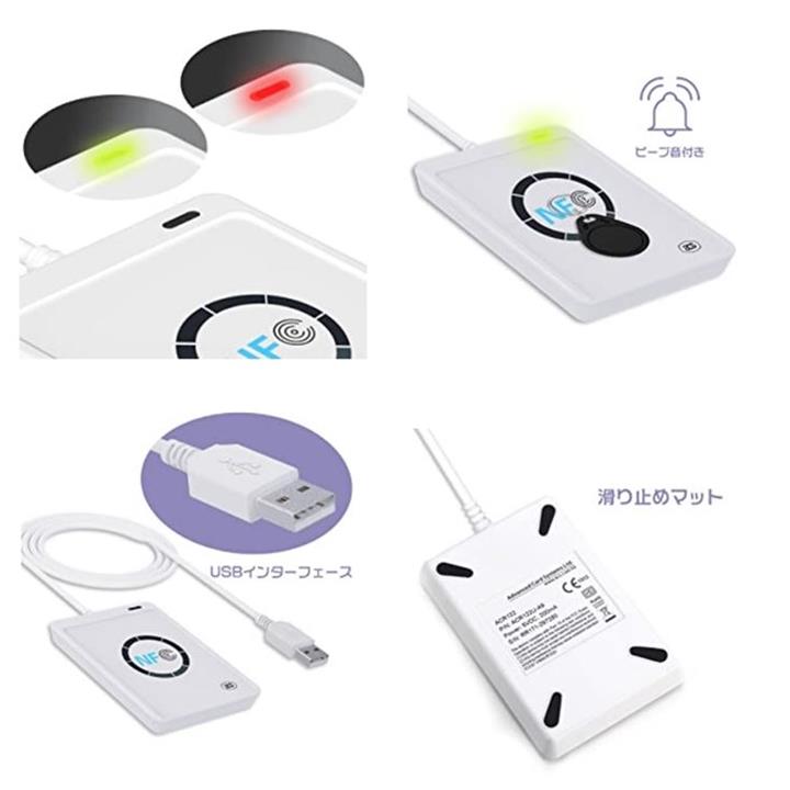互換品NFCリーダー ICカードリーダー スマートカードリーダー ACR122U RFIDリーダー 非接触型 Windows10 Mac OS10.15対応