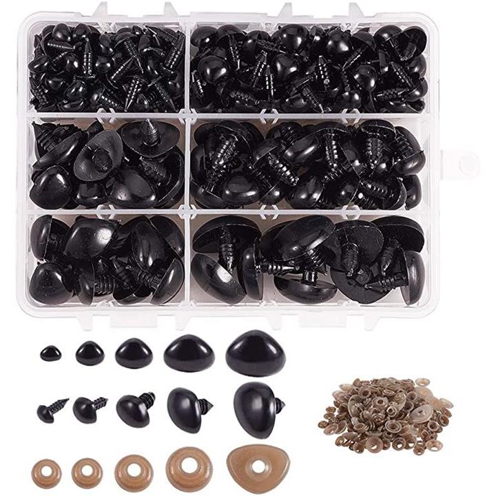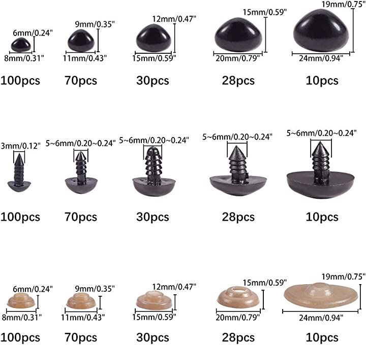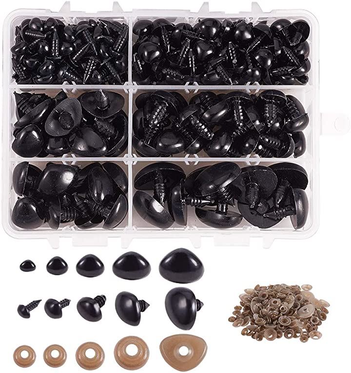 PandaHall ぬいぐるみ 動物鼻 ドールノーズ クラフト プラスチック 238個 5サイズ 6-19mm