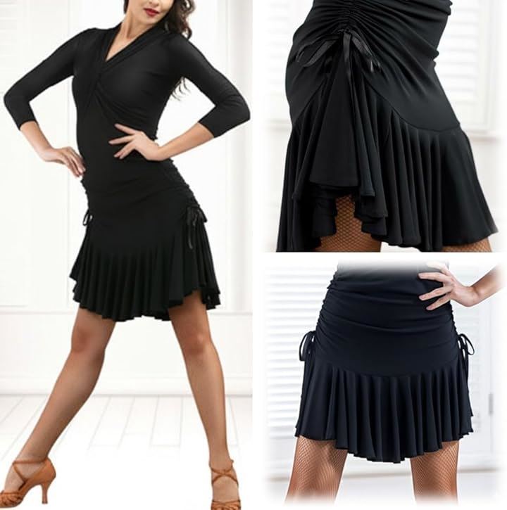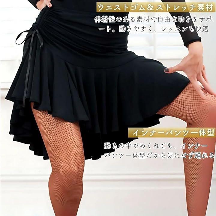 社交ダンス スカート ドレス 衣装 ラテン インナー パンツ 付き 練習 レッスン ブラック レディース ストレッチ 動きやすい