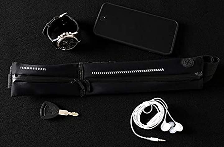スポーツウェストポーチ スリム 収納力 抜群 イヤホン用穴あり 伸縮性素材 バッグ スマホ 携帯 軽量 ずれない 防水 体にぴったり