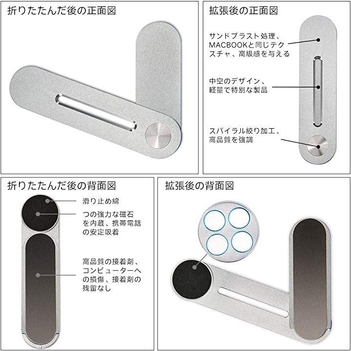 互換品2020最新版 Elim's Choice スマホスタンド 携帯電話ホルダー デスクトップモニターとラップトップモニターの両方に適合 デュアルスクリーンディスプレイ マグネット式 着脱簡単 アルミ合金製 回転式 折りたたみ収納 40g 取り付け簡単 すべてのスマートフォンに対応 シルバー |