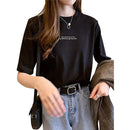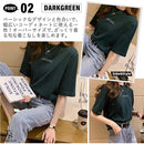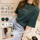 タイムスリップ レディース シンプル ベーシック 5分袖 ロゴ プリント ロング Tシャツ チュニック カットソー トップス ざっくり ゆったり オーバーサイズ カラー かっとそー てぃーしゃつ