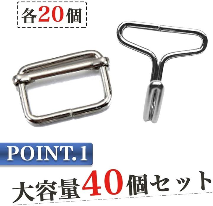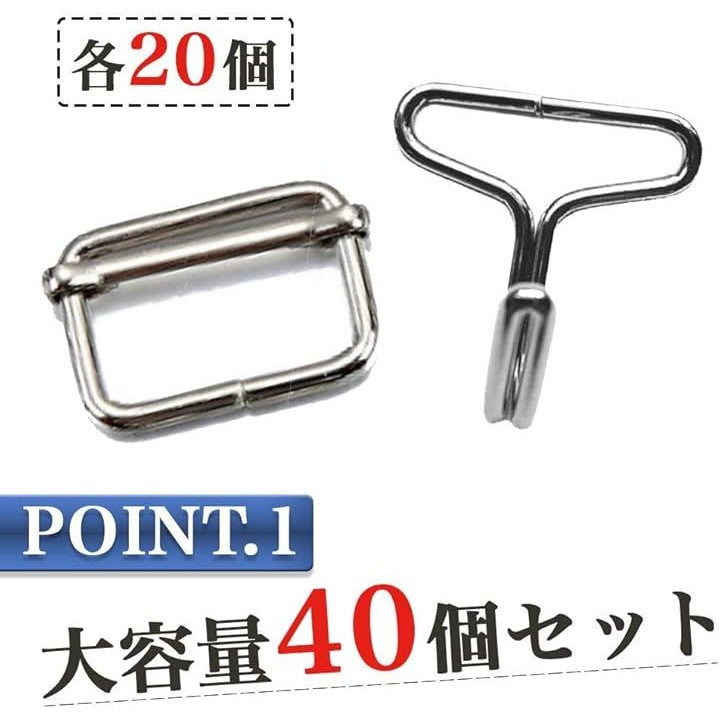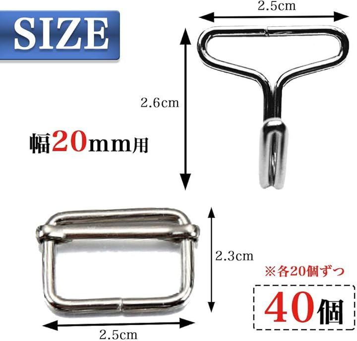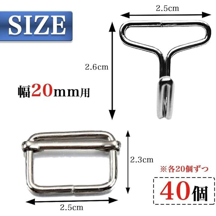 ゴムロープ 金具 フック バックル チューブ 線送り 幅20mm対応 各20個 計40個