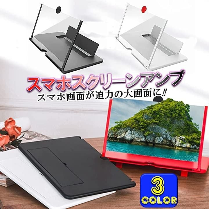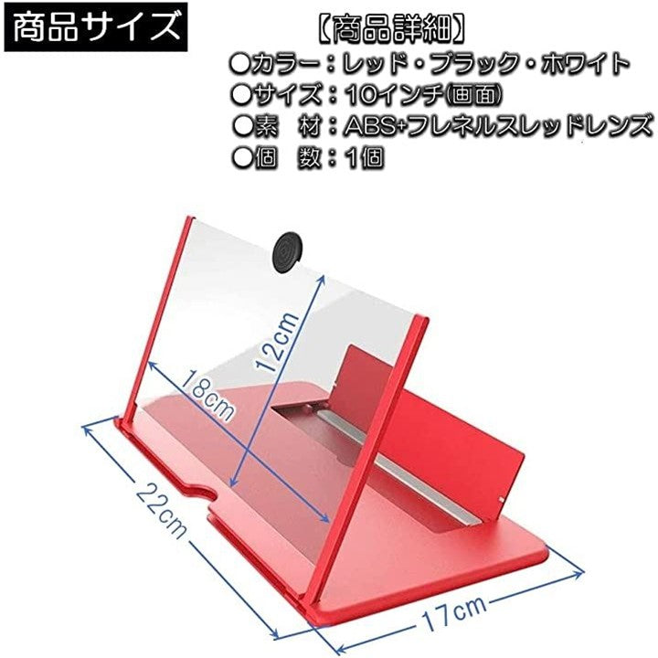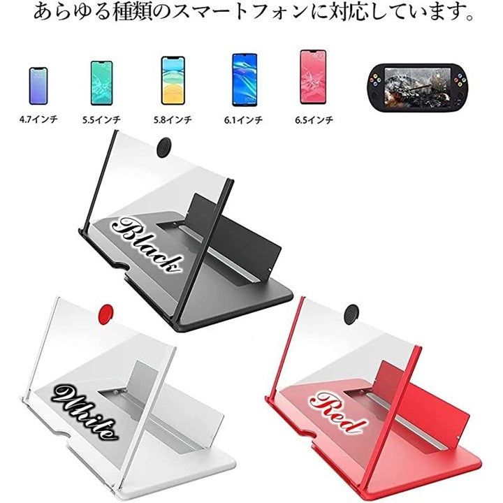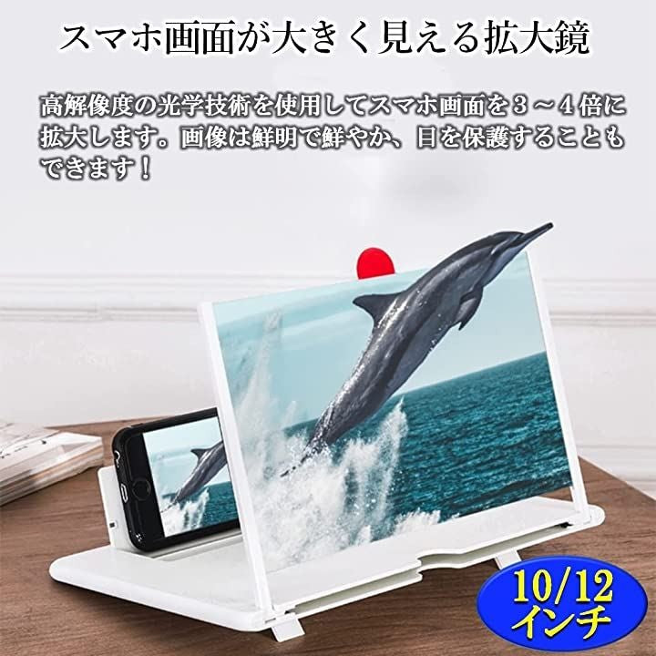 こもれび屋最新版 3D スマホ画面拡大鏡 折りたたみスマホ拡大器 多機能スクリーンアンプ 拡大ルーペ付きスマホスタンド OD14 10インチ ホワイト