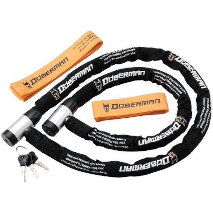 ドーベルマン DOBERMAN 1本の鍵で2本をロック.. 繋げれば2mのロング仕様に..バイク ジョイントケーブルロック ツイン