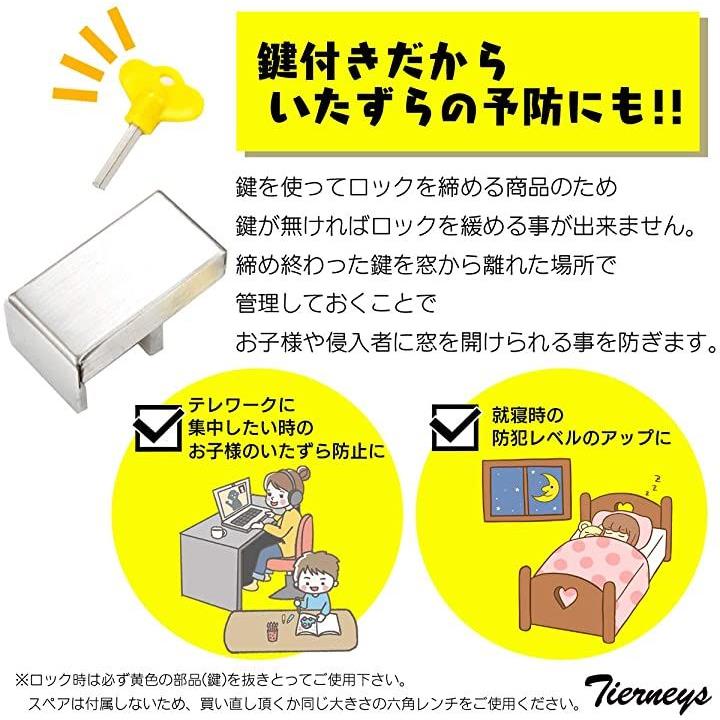 ティアニーズウィンドウ ロック 補助錠 窓ロック 六角キータイプ いたずら防止 転落防止 防犯対策 上下用2個 セット ベランダ 窓用