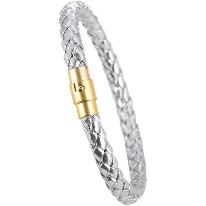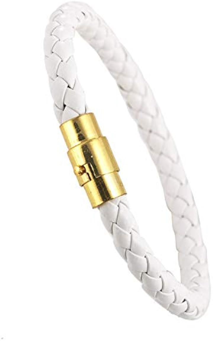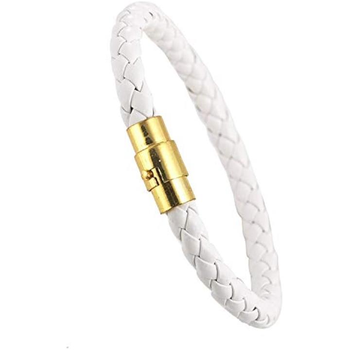 ブレスレット メンズ PUレザー 編み込み 磁気ブレスレット ユニセックス ゴールド 金 重ね付け ステンレス 人気アクセサリー