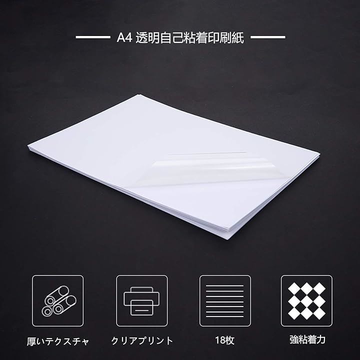 18枚 A4サイズ クリア PETフィルム ラベル ステッカー インクジェットプリンター向き 事務用品用 防水ブランク粘着印刷ラベル