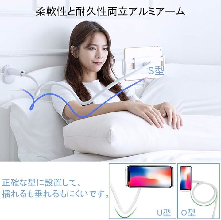 ・「自由自在に角度調整」フルシキブルアームの内蔵は柔軟性と耐久性両立航空用アルミニウム合金を採用し、外装は高級PVC採用していますので、何度曲げてもヘタらない、丈夫なスマホスタンドに仕上がっています。