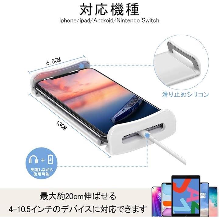・「寝ながら使用可能」 両手を解放して、リビングや寝室で寝そべりながら動画、音楽再生等を楽しめます。