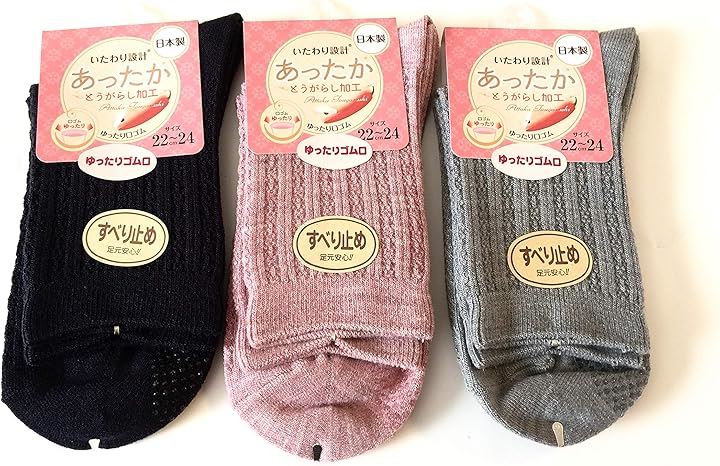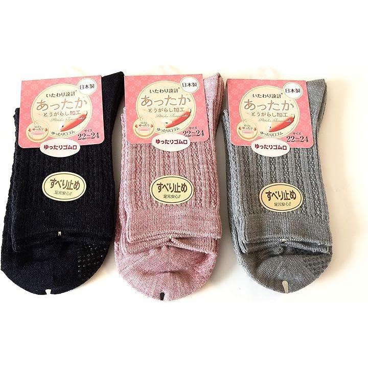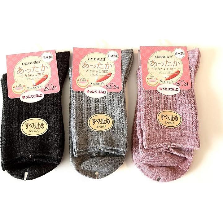 ソックス レディース 毛混 すべり止め付き リンクス 靴下 日本製 あったか とうがらし加工 口ゴムゆったり 3足セット 色はお任せ