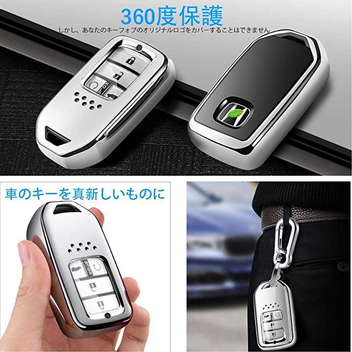 「互換品」Uxinuo HONDA ホンダ キーケース キーホルダー, 360度フルプロテクション 高級 TPU 車用 キーカバー のために適しフィットハイブリッド VEZEL ヴェゼルステップワゴンスパーダ フリード キーレススマートキーフォブ (シルバー) |