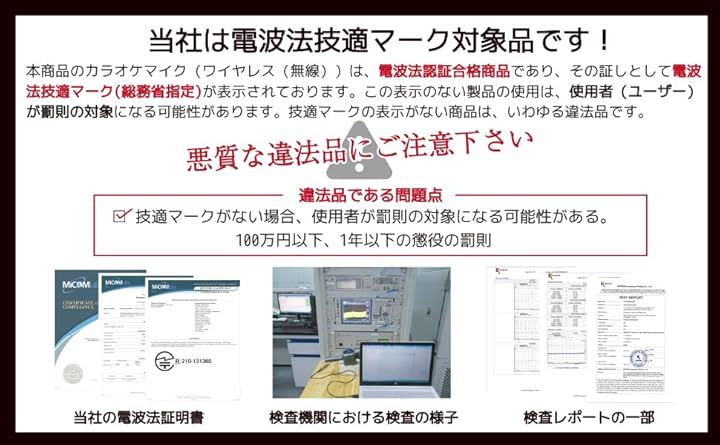 「マイクが選ばれる理由」「電波法(技適マーク)認可商品」♫本製品は正規の登録証明機関において技術基準適合証明(技適マーク)を取得している商品になります。