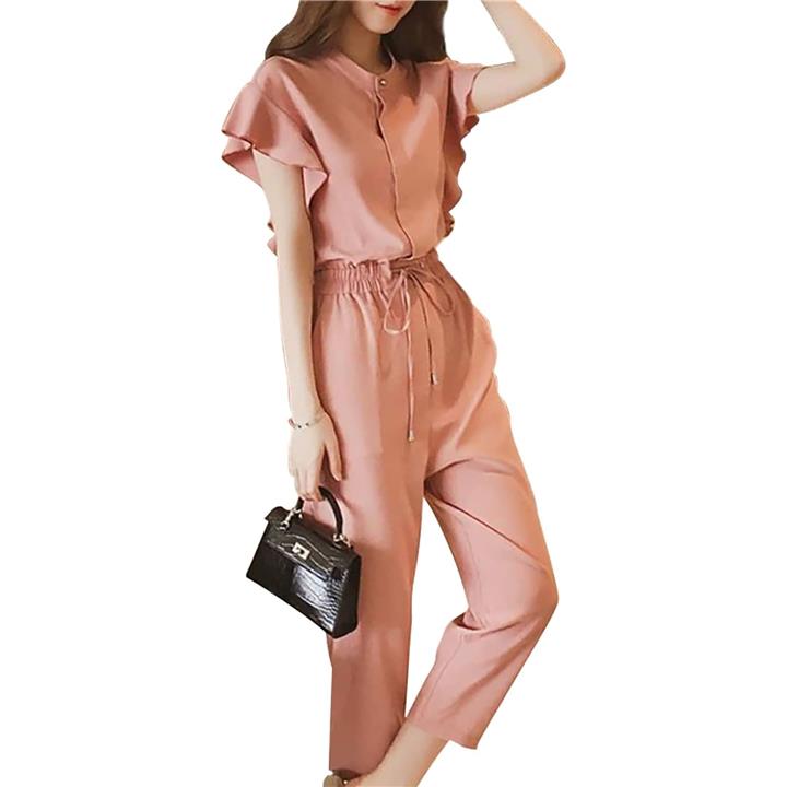 [ニーマンバイ] フレンチスリーブ セットアップ フリル袖 上下セット 9分丈 パンツドレス スーツ 部屋着 薄手 フォーマル 無地 シンプル ルームウェア かわいい おしゃれ 1S-N20-PKXL |