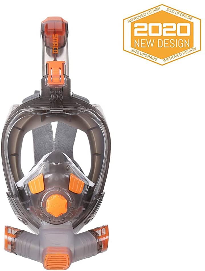 SMACO 2020最新世代 シュノーケルマス フルフェイス型 ダイビングマスク男女兼用 180°のワイドビュー スノーケリング GoPro 折り畳み式 曇り止め 浸水防止 スポーツカメラ取付可能 シュノーケリング用具 初心者にも適用 イエロー S/M